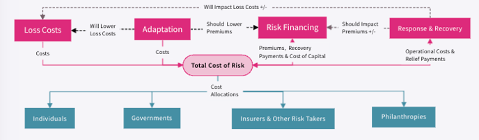 The TCOR framework considers the dynamic relationships between investments and other costs across the entire public, private and philanthropic funding systems for managing catastrophe impacts.